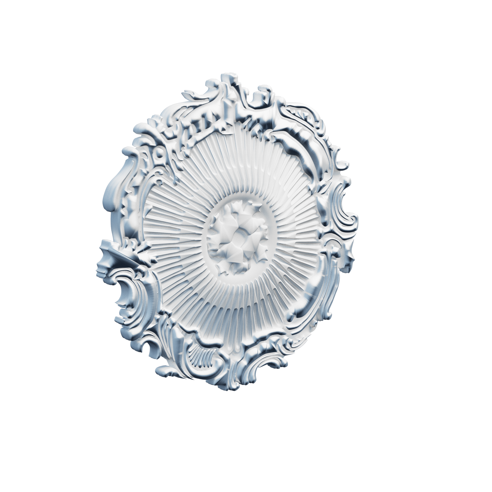 Потолочная розетка из полиуретана. Для монтажа розетки рекомендуем использовать специальный монтажный клей, покраска возможна любой водоэмульсионной краской