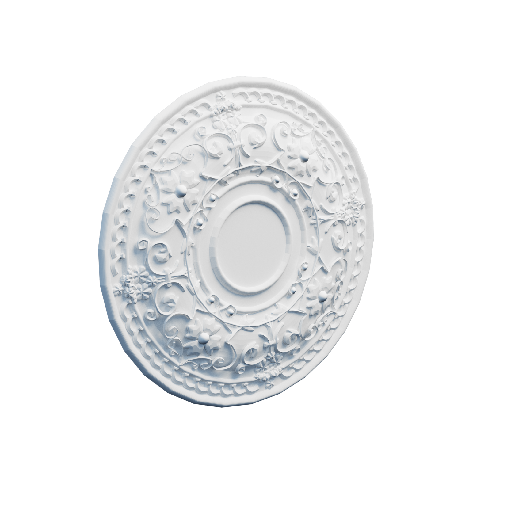 Потолочная розетка из полиуретана. Для монтажа розетки рекомендуем использовать специальный монтажный клей, покраска возможна любой водоэмульсионной краской